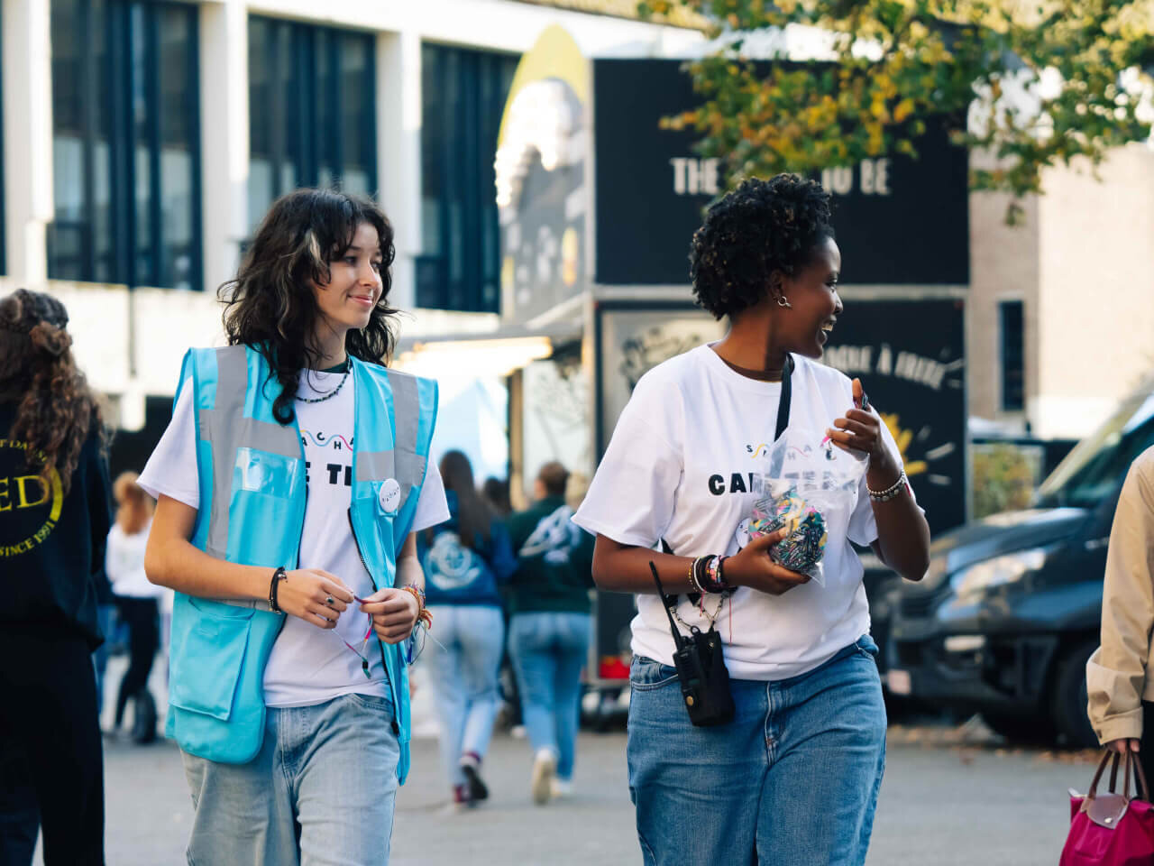 Avec ta veste bleue et ton talkie, tu iras à la rencontre des festivalier·ères leur parler du dispositif d’urgence pour les victimes et témoins de situations dites « SACHA ».