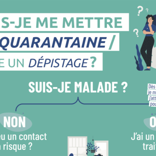 Le bon réflexe en cas de contact à risque ou de symptômes du coronavirus ? Avant toute chose, la quarantaine ! La quarantaine dure quelques jours et permet de ralentir la propagation du virus. Découvre ici la marche à suivre pour te mettre en quarantaine et/ou te faire tester et télécharge nos packs visuels.