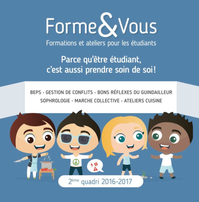 Le programme de formation « Forme&Vous » du second quadri est déjà en ligne. Inscris-toi dès la rentrée, le lundi 6 février, aux formations/ateliers qui t’intéressent !