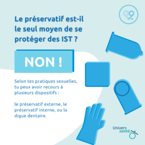 Tous les moyens de protection ne sont pas toujours connus. Savais-tu qu’au-delà du préservatif dit « externe », il y a également le préservatif interne, la digue dentaire (ou carré de latex) et le gant ? Il ne te reste plus qu’à utiliser le moyen de protection le plus adapté à tes pratiques sexuelles !